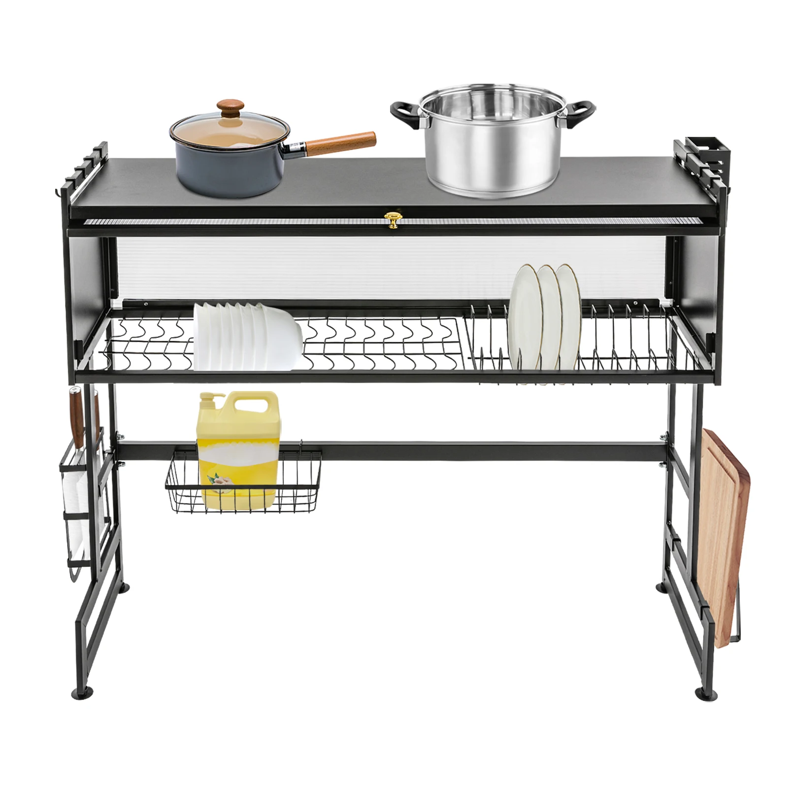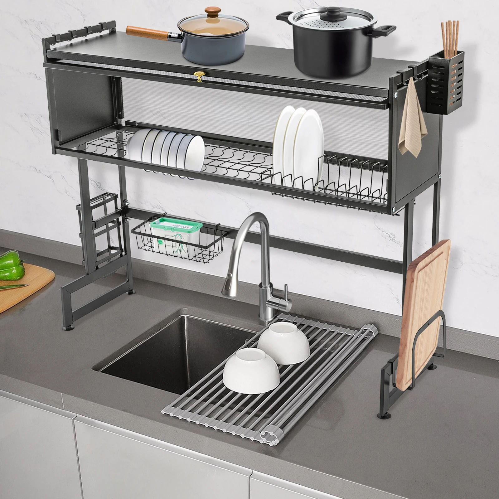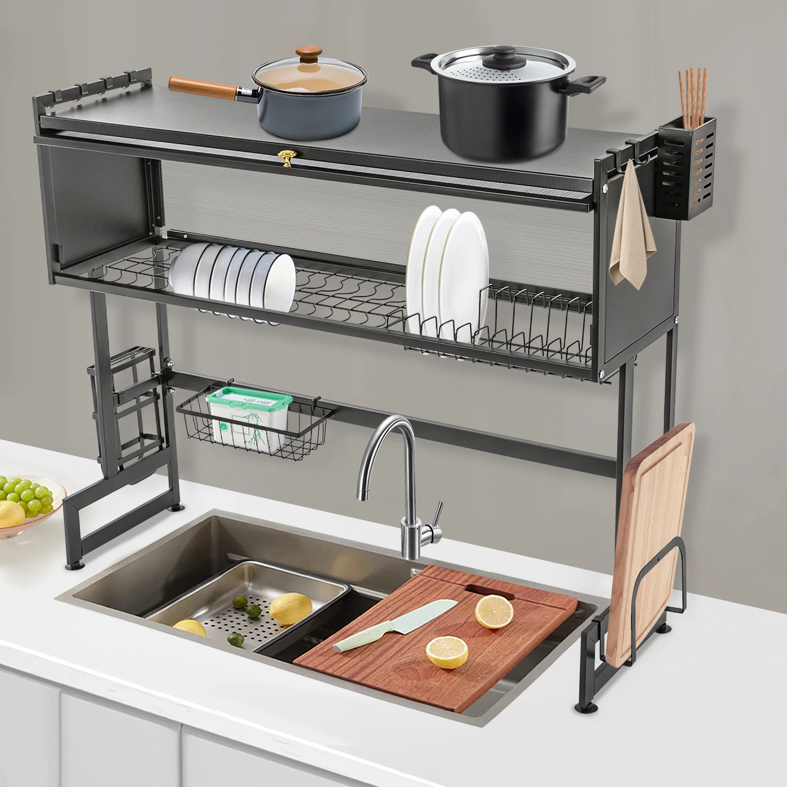 92cm Dish Drying Rack & Drainboard Organizer for Kitchen Plates, Over Sink Countertop, Cutlery Storage With cabinet door