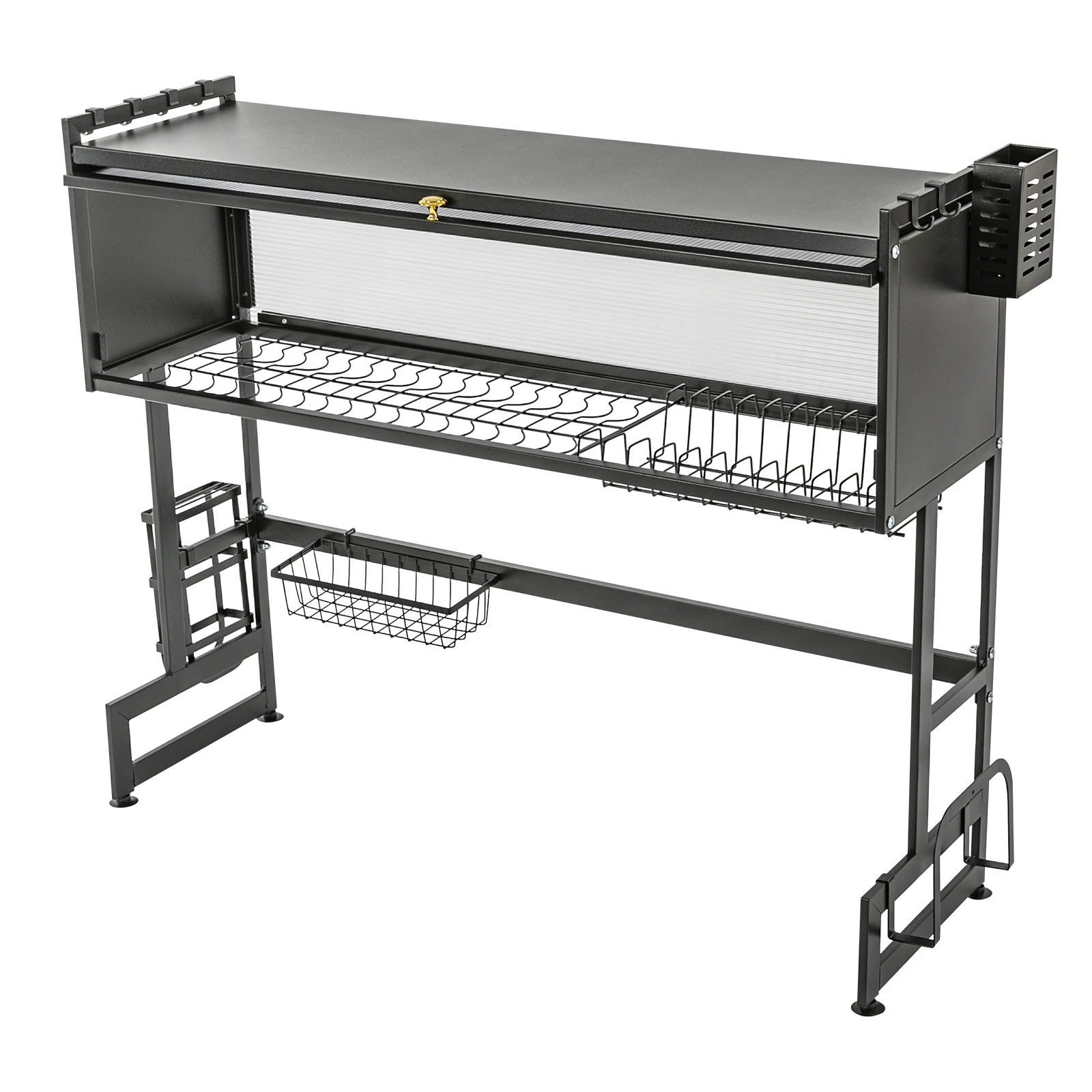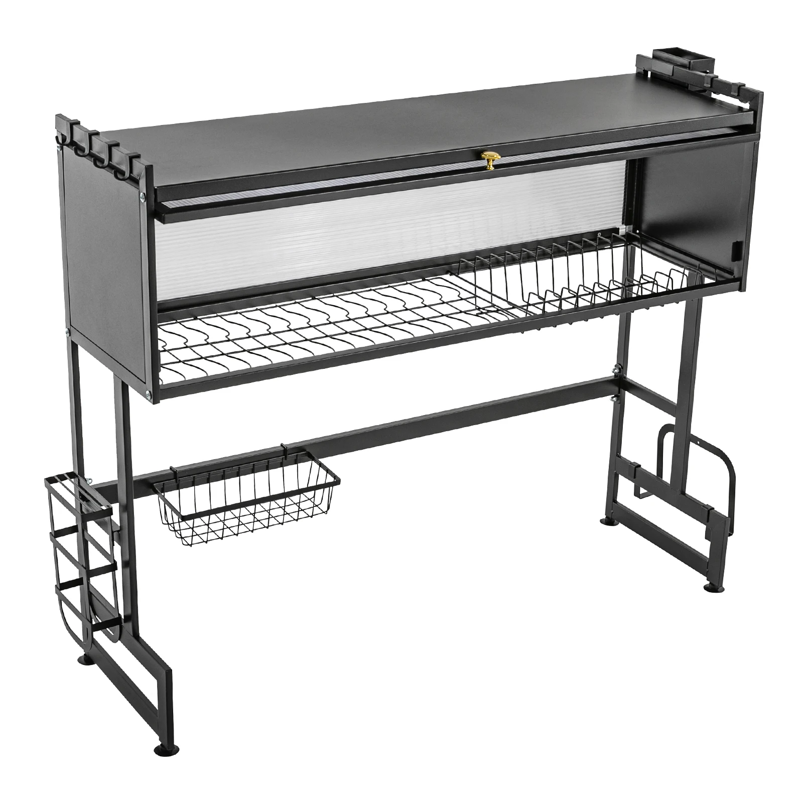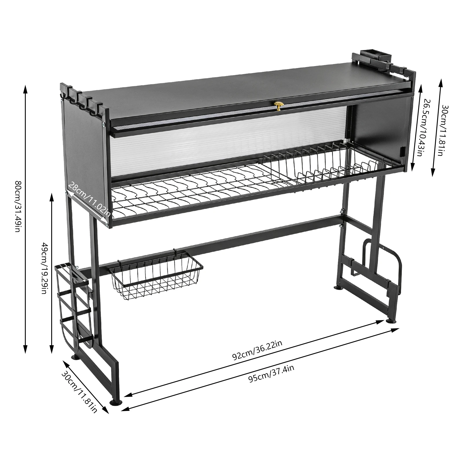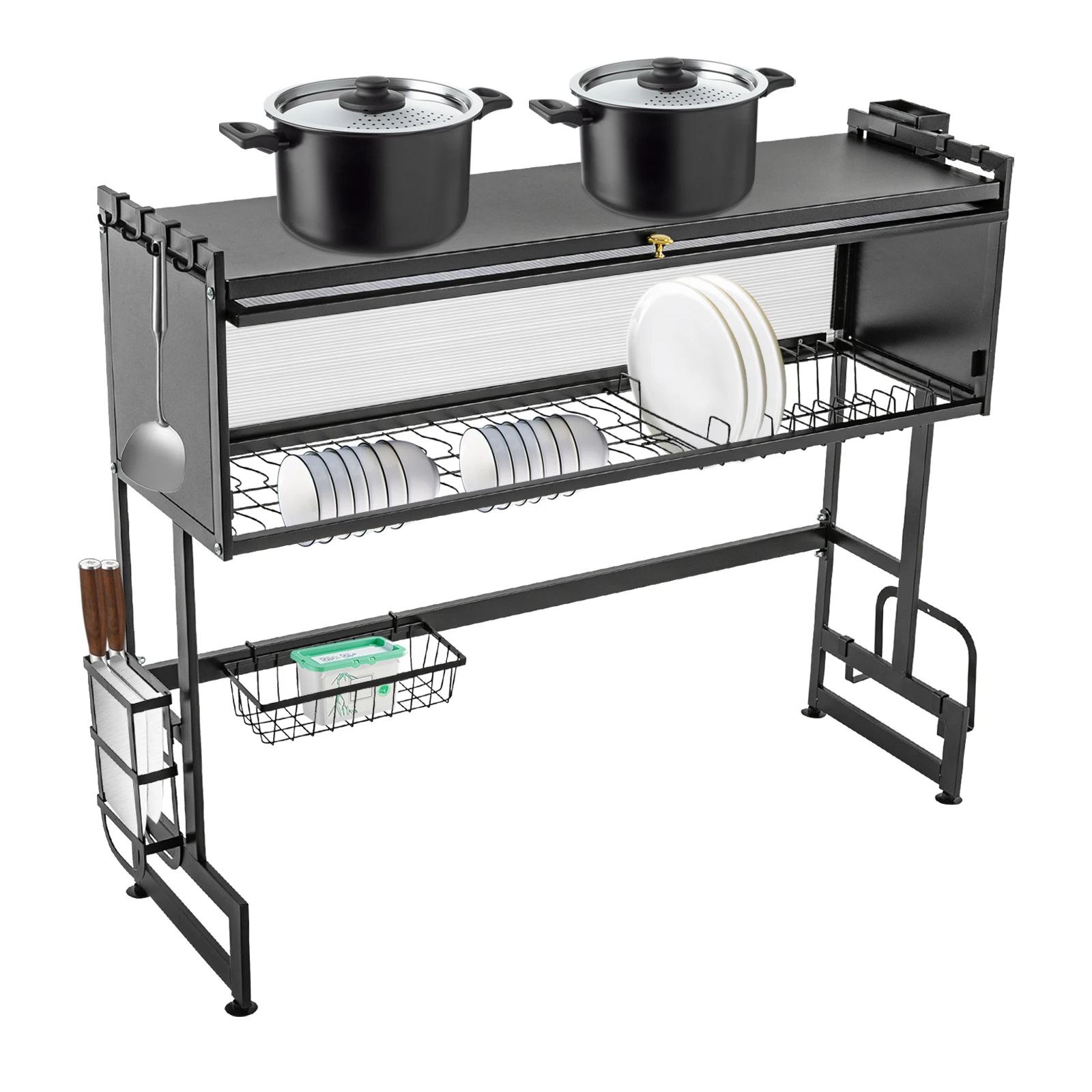 92cm Dish Drying Rack & Drainboard Organizer for Kitchen Plates, Over Sink Countertop, Cutlery Storage With cabinet door