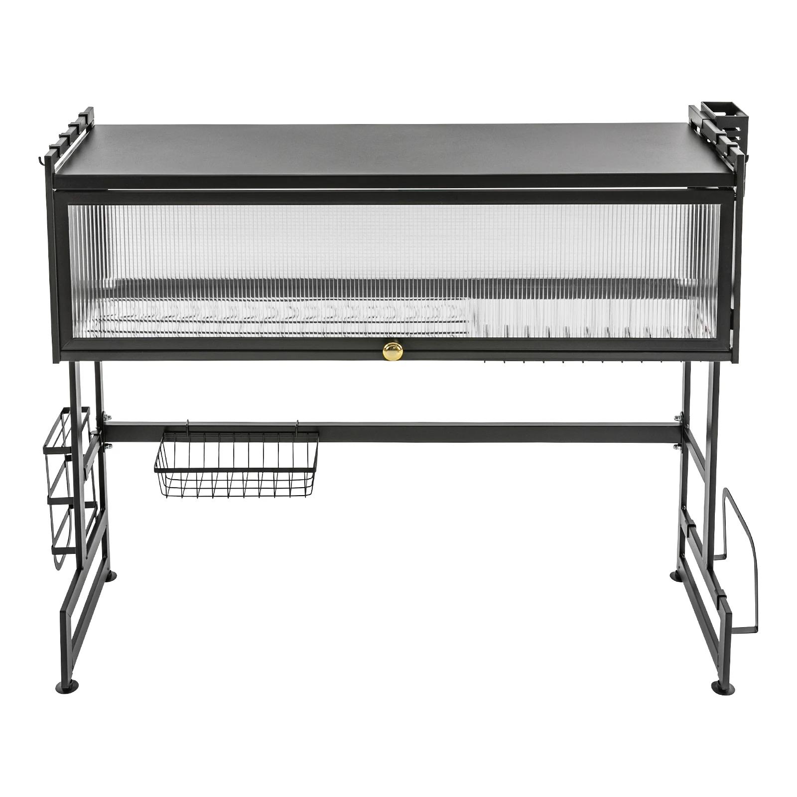 Thoughtful Design: Flip-up cabinet door design makes opening and closing more convenient, and at the same time protects against dust, moisture, and grease, ensuring excellent sealing. The clear cabinet door and open design make it easy for you to observe the items on the shelves and access what you need quickly and easily. You can also freely change the position of the accessories on both sides for greater convenience.