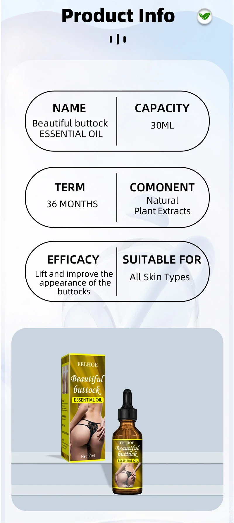 Suitable for all skin types: Our butt enlargement oil issuitable for different skin types.